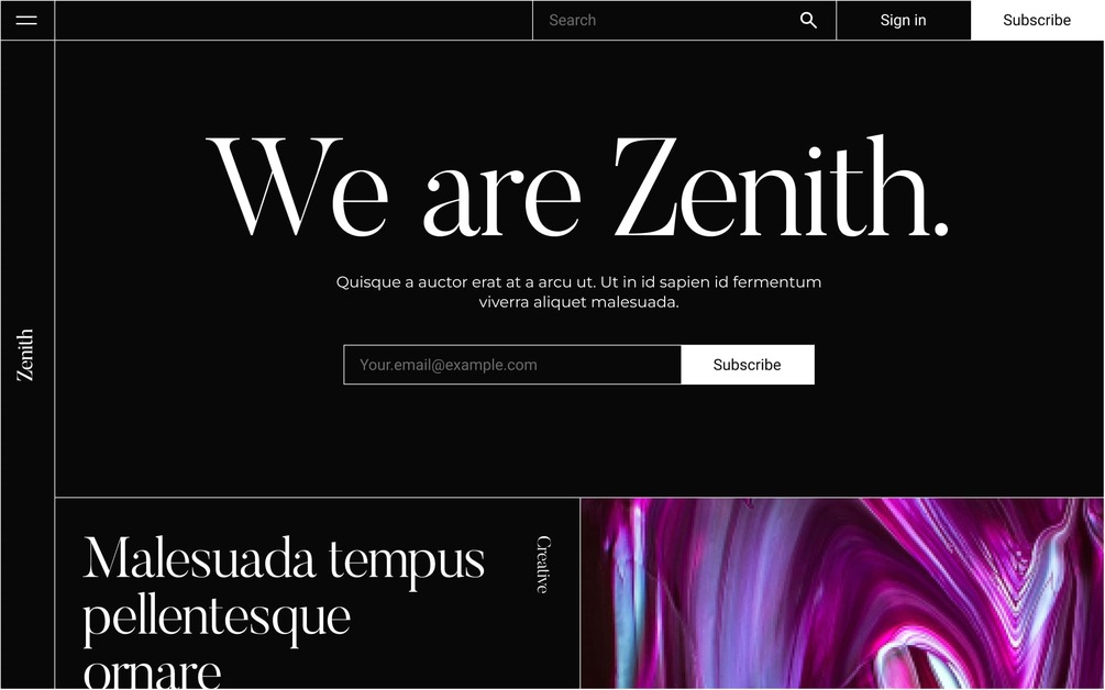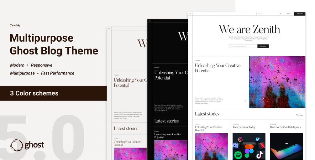 Zenith is a multipurpose Ghost theme designed to empower you in creating a truly personalized and captivating blog experience.